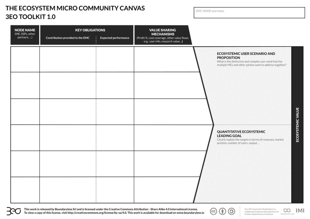 To address this tension, the 3EO Framework, inspired by Rendanheyi, features the Ecosystem Micro-Community Contracts (EMC Contracts). EMC contracts are contract types pioneered by Haier in the late 2010s, invented to define how value is created, delivered, and shared among participants in a collaboration, establishing clear rules for revenue distribution and performance accountability across units.