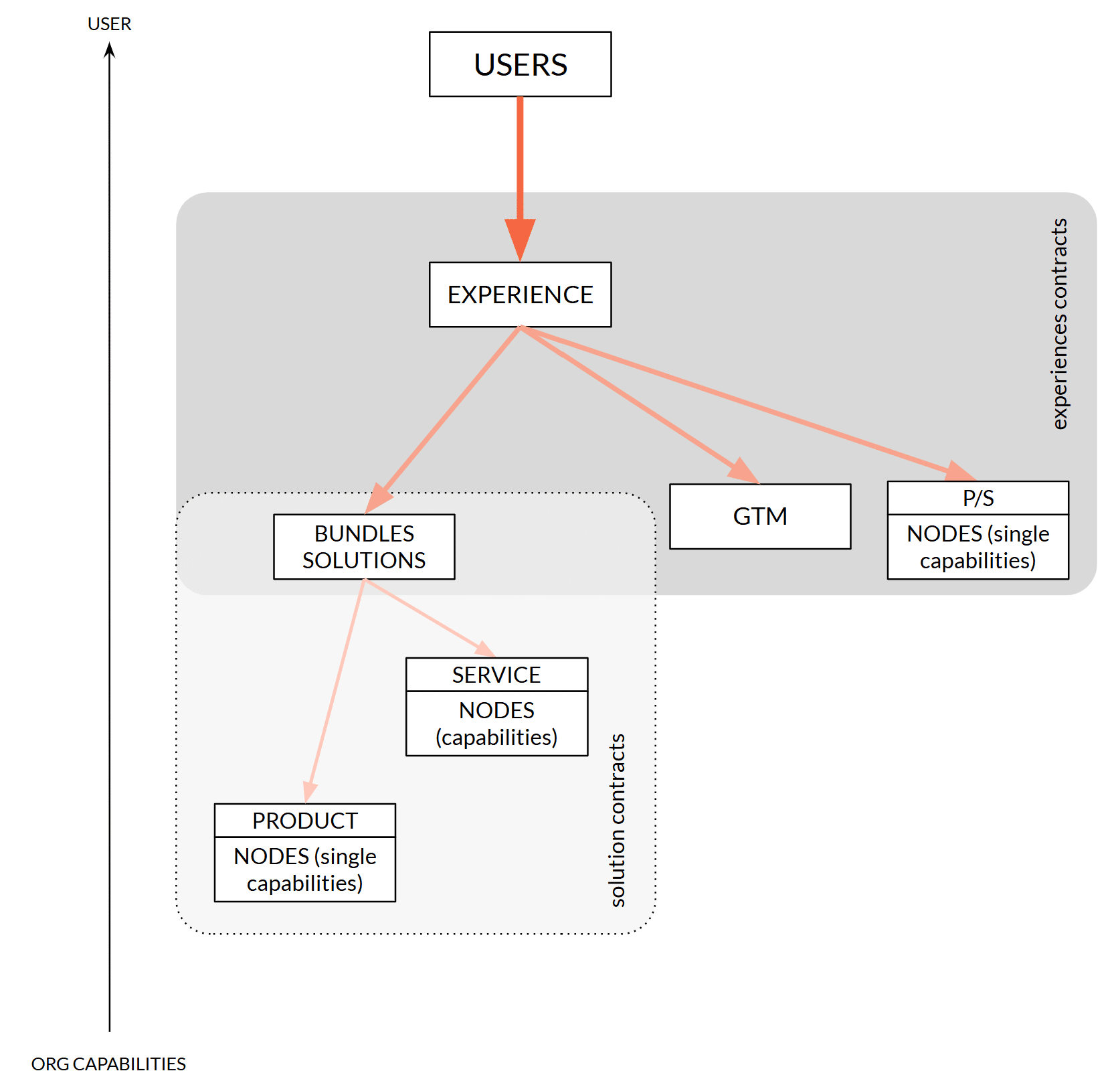 Both experiences and solutions can be viewed as contracts that coordinate commitments to a specific promise and split revenues or profits. The split needs to be explicit and negotiable: who contributes what, who earns what.